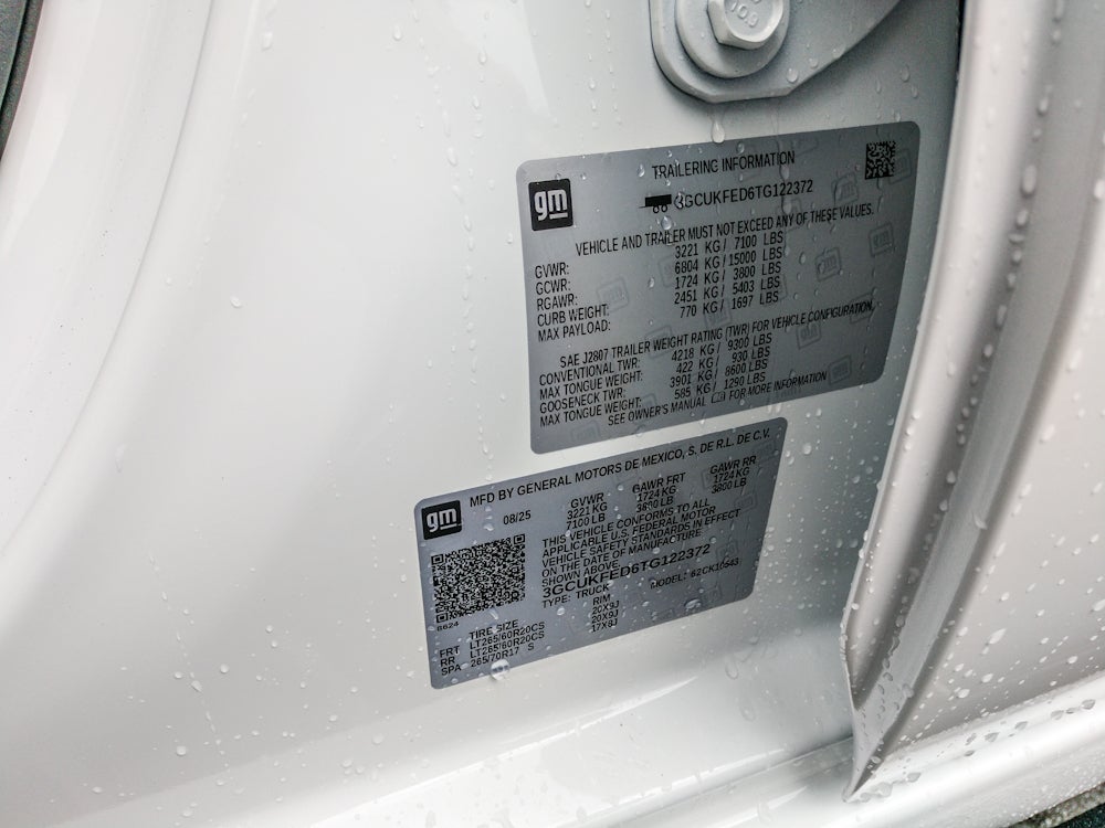Convenience Package II: Premium Bose 7-Speaker Sound System; Power Sliding Rear Window with Rear Defogger; In-Vehicle Trailering System App; Universal Home Remote; Hitch Guidance with Hitch View. Leather Package: Leather-Appointed Front Seat Trim; Up-Level Rear Seat with Storage Package. Safety Package: HD Surround Vision; Rear Cross Traffic Braking; Trailer Side Blind Zone Alert; Rear Pedestrian Alert; Ultrasonic Front and Rear Park Assist; Perimeter Lighting; Trailer Camera Provisions. Preferred Equipment Group 2LT: HD Rear Vision Camera; 20" X 9" High Gloss Black Painted Aluminum Wheels; Rear 60/40 Folding Bench Seat (folds Up); SiriusXM with 360L Trial Subscription; Bluetooth® For Phone; Trailering Package; Standard Tailgate; Front LED Fog Lamps; Tire Pressure Monitoring System; Suspension Package; Steering Wheel Audio Controls; Teen Driver; Color-Keyed Carpeting Floor Covering; OnStar Services Capable; Power Front Windows with Passenger Express Down; Inside Rearview Mirror with Tilt; 2-Speed Electronic Autotrac Transfer Case; Deep-Tinted Glass; 12.3" Multicolor Reconfigurable Digital Display; 6-Speaker Audio System; All-Weather Floor Liner; High Gloss Black Mirror Caps; Electronic Cruise Control; Power Rear Windows with Express Down; Chevy Safety Assist; Performance Red Recovery Hooks; Integrated Trailer Brake Controller; Power Front Windows with Driver Express Up/down; EZ Lift Power Lock and Release Tailgate; Convenience Package; Auto-Locking Rear Differential; Heated Power-Adjustable Outside Mirrors. Off-Road High Clearance Steps. Power Sunroof. Front Bucket Seats. LT265/60R20 MT Blackwall. Wheel Locks (set of 4). **Equipment listed is based on original vehicle build and subject to change. Please confirm the accuracy of the included equipment by calling the dealer prior to purchase.**