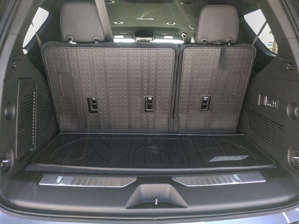 Comfort Package: Heated 2nd Row Outboard Seats; 2nd Row Power Release 60/40 Split-Folding Bench Seat; Memory Settings; LED Headlamps with LED Daytime Running Lamps; Heated Steering Wheel; Bose 10-Speaker Centerpoint Surround Audio System Feature; 3rd Row 60/40 Power-Folding Split-Bench Seat; LED Tail Lamps; Outside Heated Power-Adjustable Mirrors. Preferred Equipment Group 1SP: Bright Front and Rear Door Sill Plates; 1st and 2nd Row Color-Keyed Carpeted Floor Mats; Remote Start; Rear Power Liftgate; Key Card; Interior Camera; Floor Console with Storage Area; Dual Exhaust System; 3-Spoke Wrapped Steering Wheel; SiriusXM with 360L Trial Subscription; Front LED Fog Lamps; Frontal Driver and Outboard Passenger Airbags; Wireless Phone Charging; USB Ports; Auto-Dimming Inside Rearview Mirror; Memory Settings For Driver; Front Bucket Seats; 3rd Row Manual 60/40 Split-Folding Bench Seats; 275/50R22SL AS BW Tires; Universal Home Remote; RST Exterior Features; Color-Keyed Carpeting Floor Covering. All-Weather Liner Protection Package: All-Weather Cargo Mat; 3rd Row All-Weather Floor Liners; 1st and 2nd Rows All-Weather Floor Liners. Power Release 2nd Row Bucket Seats. **Equipment listed is based on original vehicle build and subject to change. Please confirm the accuracy of the included equipment by calling the dealer prior to purchase.**