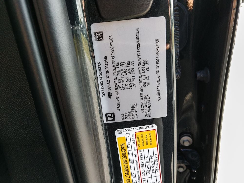 Max Trailering Package: Extra Capacity Cooling System. Advanced Trailering Package: Trailer Side Blind Zone Alert; Smart Trailer Integration Indicator; Integrated Trailer Brake Controller; Hitch Guidance with Hitch View. High Country Deluxe: Dual-Pane Power Panoramic Sunroof; Air Ride Adaptive Suspension; Power-Retractable Assist Steps; Adaptive Cruise Control. Preferred Equipment Group 3LZ: Bright Front and Rear Door Sill Plates; Memory Settings; Stop/start System Disable Button; Perforated Leather Seat Trim; Remote Start; 3rd Row 60/40 Power-Folding Split-Bench Seat; Safety Alert Seat; Chrome Door Handles with Body-Color Strip; 6.2L EcoTec3 V8 Engine; Rear Camera Mirror Washer; Inside Rearview Auo-Dimming Rear Camera Mirror; Heated Steering Wheel; LED Daytime Running Lamps; Rear Cross Traffic Alert; Wheels: 22" X 9" Sterling Silver Premium Painted; Driver and Front Outboard Passenger Airbags; Wireless Charging; Front High-Back Reclining Bucket Seats; Universal Home Remote; Color-Keyed Carpeting Floor Covering; Heated 2nd Row Outboard Seats; Hands-Free Rear Power Programmable Liftgate; Chevrolet Infotainment 3 Premium System Radio; 1st and 2nd Row Color-Keyed Carpeted Floor Mats; Enhanced Driver Information Center; Floor Console; Lane Change Alert with Side Blind Zone Alert; Dual Exhaust System; SiriusXM Radio with 360L; HD Surround Vision; Power Tilt and Telescopic Steering Column; Leather-Wrapped Steering Wheel; 15" Diagonal Multi-Color Head-Up Display; Rear Pedestrian Alert; Bose 10-Speaker Centerpoint Surround Audio System Feature; Magnetic Ride Control Suspension; Infotainment Display; Automatic Stop/start; Power Release 2nd Row Bucket Seats; 275/50R22SL AS BW Tires; Outside Heated Power-Adjustable Mirrors. Rear Seat Media System. Power-Retractable Assist Steps. Dual-Pane Power Panoramic Sunroof. Air Ride Adaptive Suspension. Adaptive Cruise Control. All-Weather Floor Mats. All-Weather Cargo Mat. Illuminated Mirror Chevrolet Emblem. Vertical Cargo Net. **Equipment listed is based on original vehicle build and subject to change. Please confirm the accuracy of the included equipment by calling the dealer prior to purchase.**